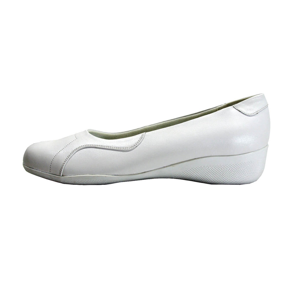24 HOUR COMFORT Aisha women's wide width slip-on shoes. This 1" low-heel durable and lightweight shoe features a round toe, rubber outsole for maximum surface grip, and a leather upper for continuous breathability and around-the-clock support and stability.