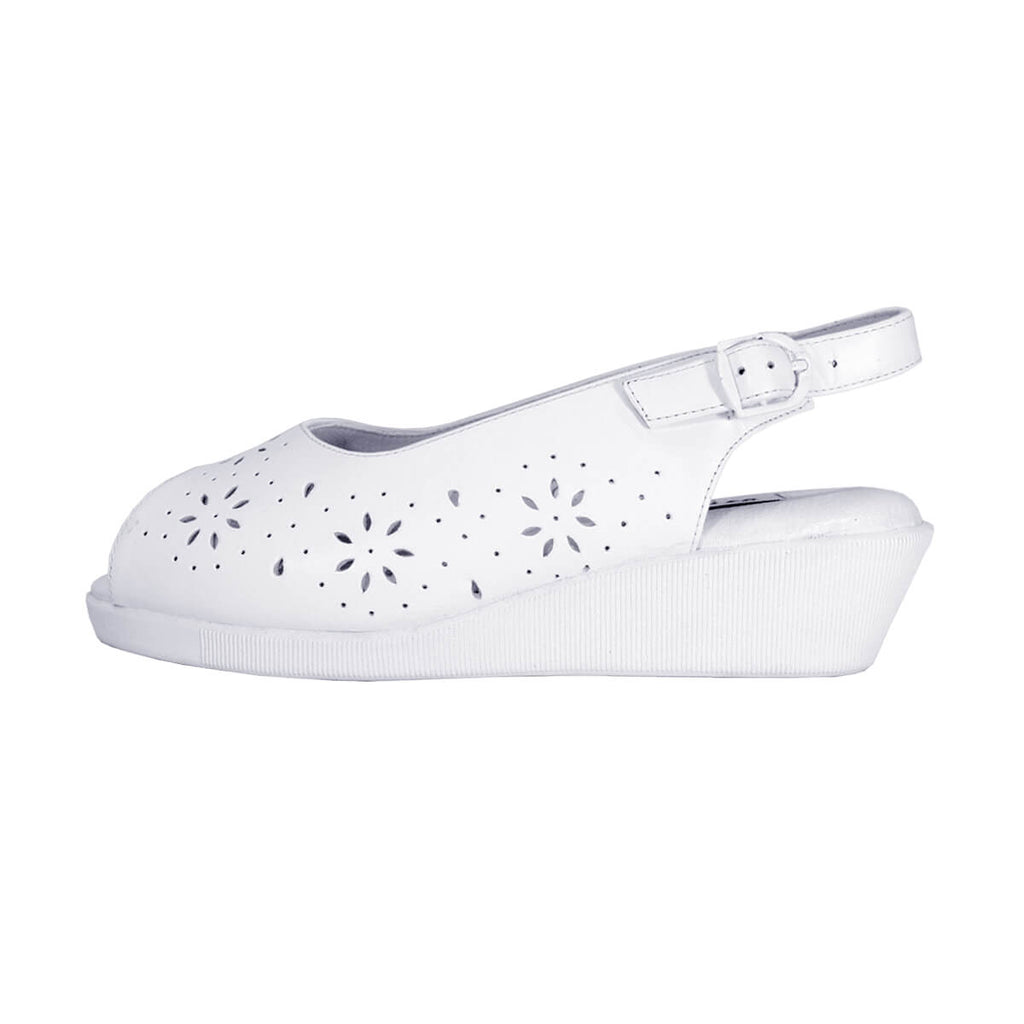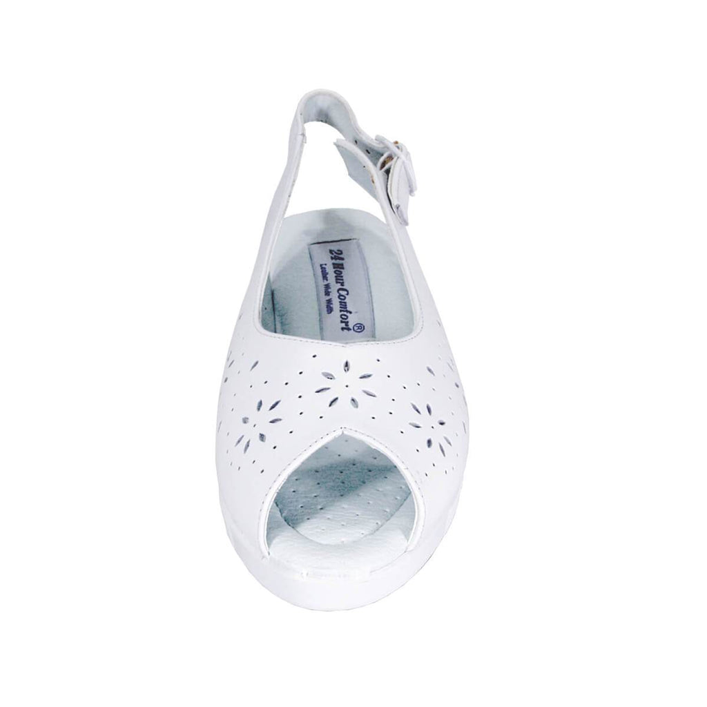 24 HOUR COMFORT Anne women's extra wide width open-toe sandal with an adjustable buckle for a perfect custom fit for any occasion. This ladies' 1.5" low heel slingback sandal features a leather upper along with a cushioned insole to keep you comfortable all day long. It's fashionable and made of durable, lightweight rubber material outsole for maximum surface grip.