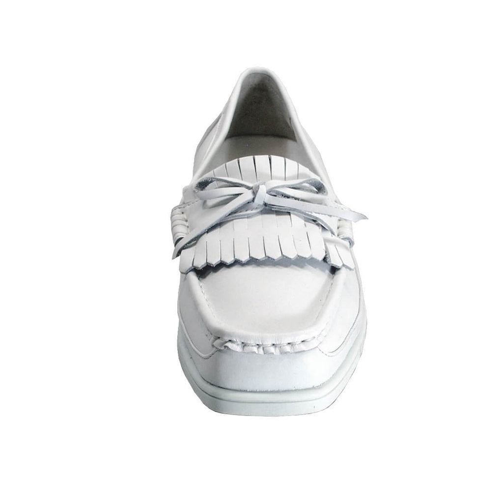 24 HOUR COMFORT Arlette women's extra wide width moccasin style casual loafers are a comfortable fit for any occasion. These ladies' leather slip-on feature a 0.5" low heel and tassel front. Its outsole is made of rubber for maximum surface grip.