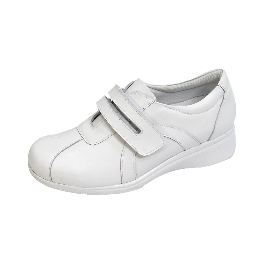 24 HOUR COMFORT Bonnie women's extra wide width shoe with hook and loop strap is most suitable for work. This ladies' durable and lightweight shoe features a rubber outsole for maximum surface grip and all leather upper for continuous breathability and around-the-clock support and stability. BONUS: If needed, the included extra insole can be inserted into the shoe to decrease width for a better fit.