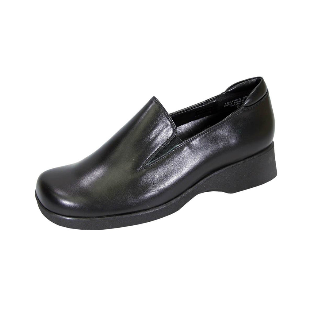 24 HOUR COMFORT Bristol women's extra wide width slip-on shoes come with a cushioned back counter. These ladies' shoes have a rubber outsole that provides maximum traction, and a leather upper with elastic gore to enhance breathability which doesn't bother your feet throughout a continuous working day. Its outsole is made of durable and lightweight rubber material to keep you comfortable and going all day long.