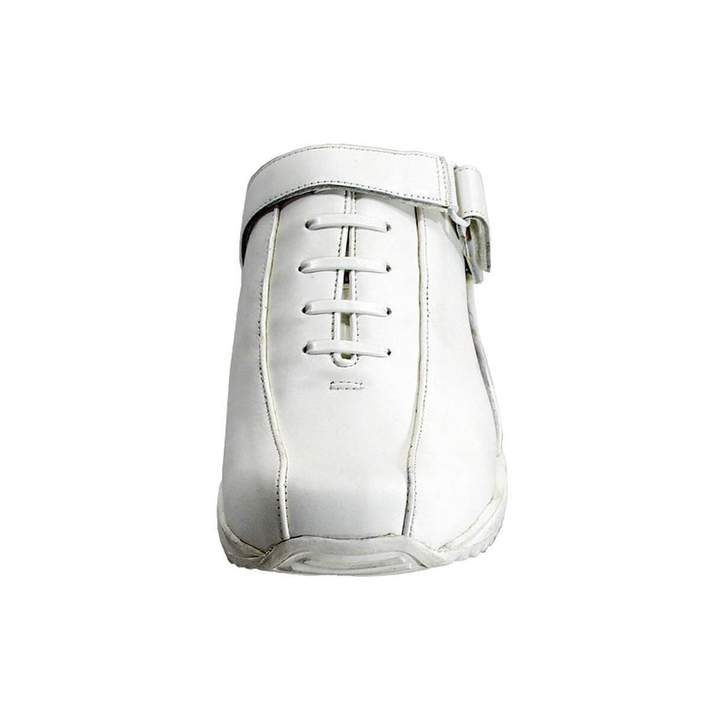 24 HOUR COMFORT Britney women's wide width clogs. Slip into these ladies' shoes that feature a rubber outsole providing maximum traction, a 1" low-heel, and hook & loop fastener back strap. Its leather upper enhance breathability to keep you comfortable and going all day long. It is the best shoe choice for professionals that need excellent support and an easy slip-on.