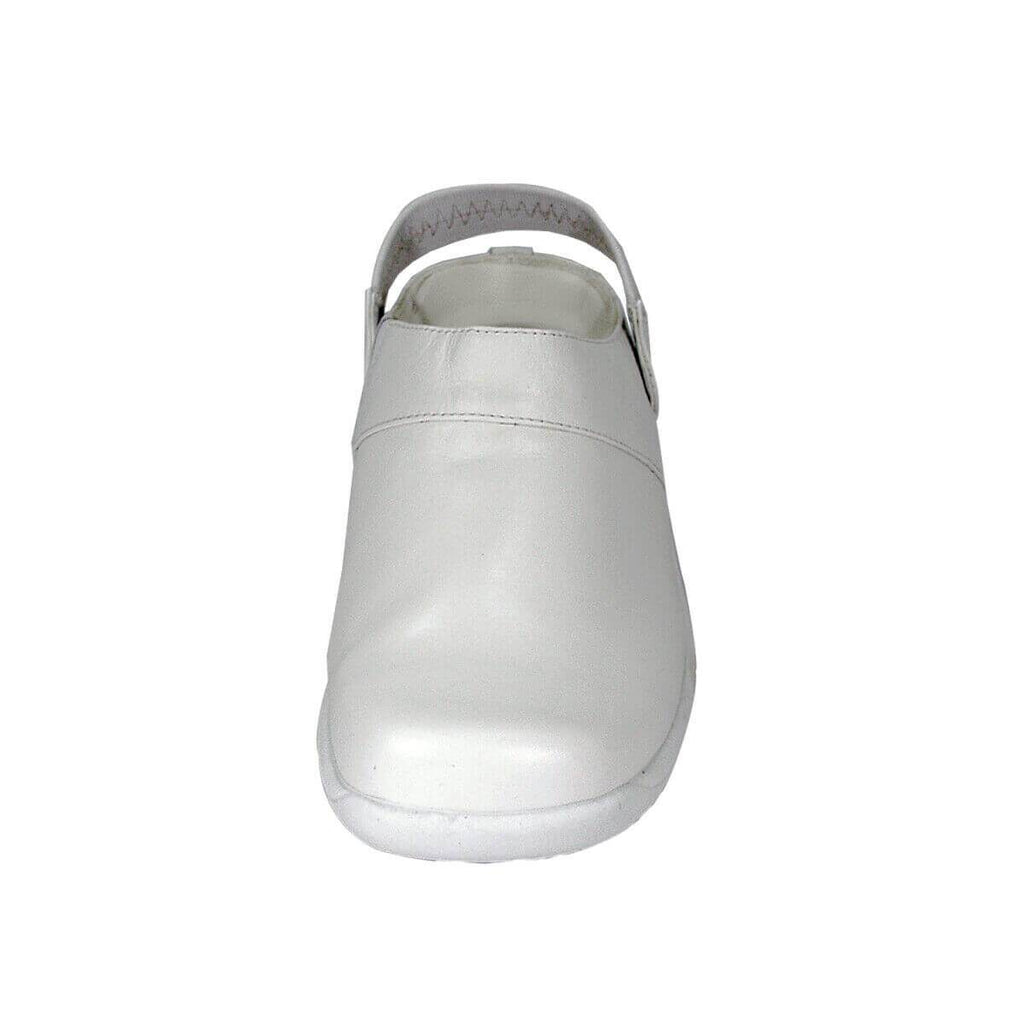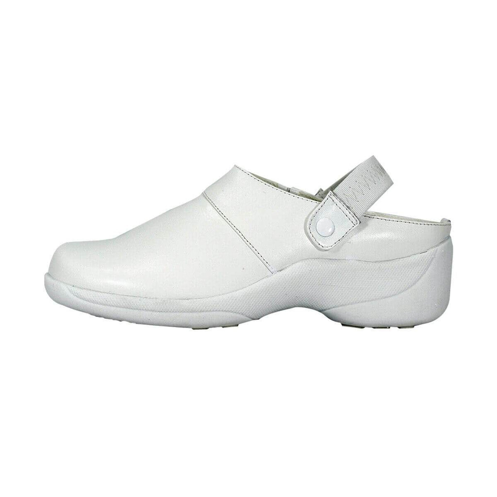 24 HOUR COMFORT Callie women's wide width clog for all-day relief and support while on your feet. This clog features a lightweight rubber outsole for maximum surface grip, an elastic back strap, and leather upper for continuous breathability and around the clock support and stability. It is the perfect shoe choice for professionals that need comfort and an easy slip-on.