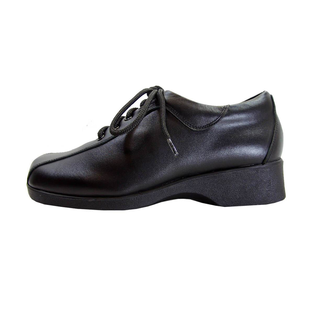 24 HOUR COMFORT Caprice women's wide width comfort shoe for a relaxed fit. This ladies' shoe features a 1" low heel, lace-up tie closure for all-day comfort while you're on the go, and it is made with a durable rubber materials outsole for maximum surface grip with a leather upper for continuous breathability.