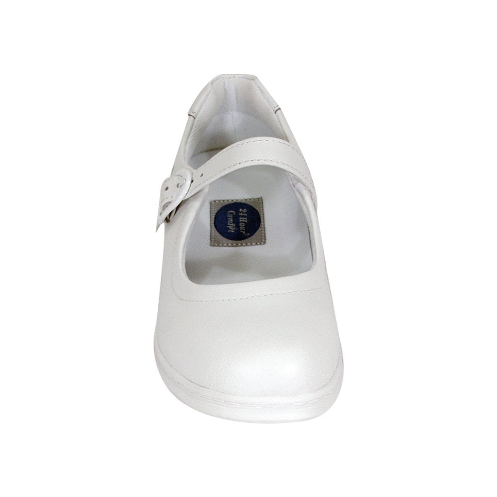 24 HOUR COMFORT Cara women's extra wide width Mary Jane shoe has an adjustable buckle. This 1" low heel ladies durable and lightweight shoe features a rubber outsole for maximum traction with a cushioned back counter. It is comfortable, both for professional or casual wear with a leather upper for continuous breathability and around the clock support and stability. The memory foam insole cushions and molds to your feet for extended comfort. BONUS: If needed, the included extra insole can be inserted into the shoe to decrease width for a better fit.