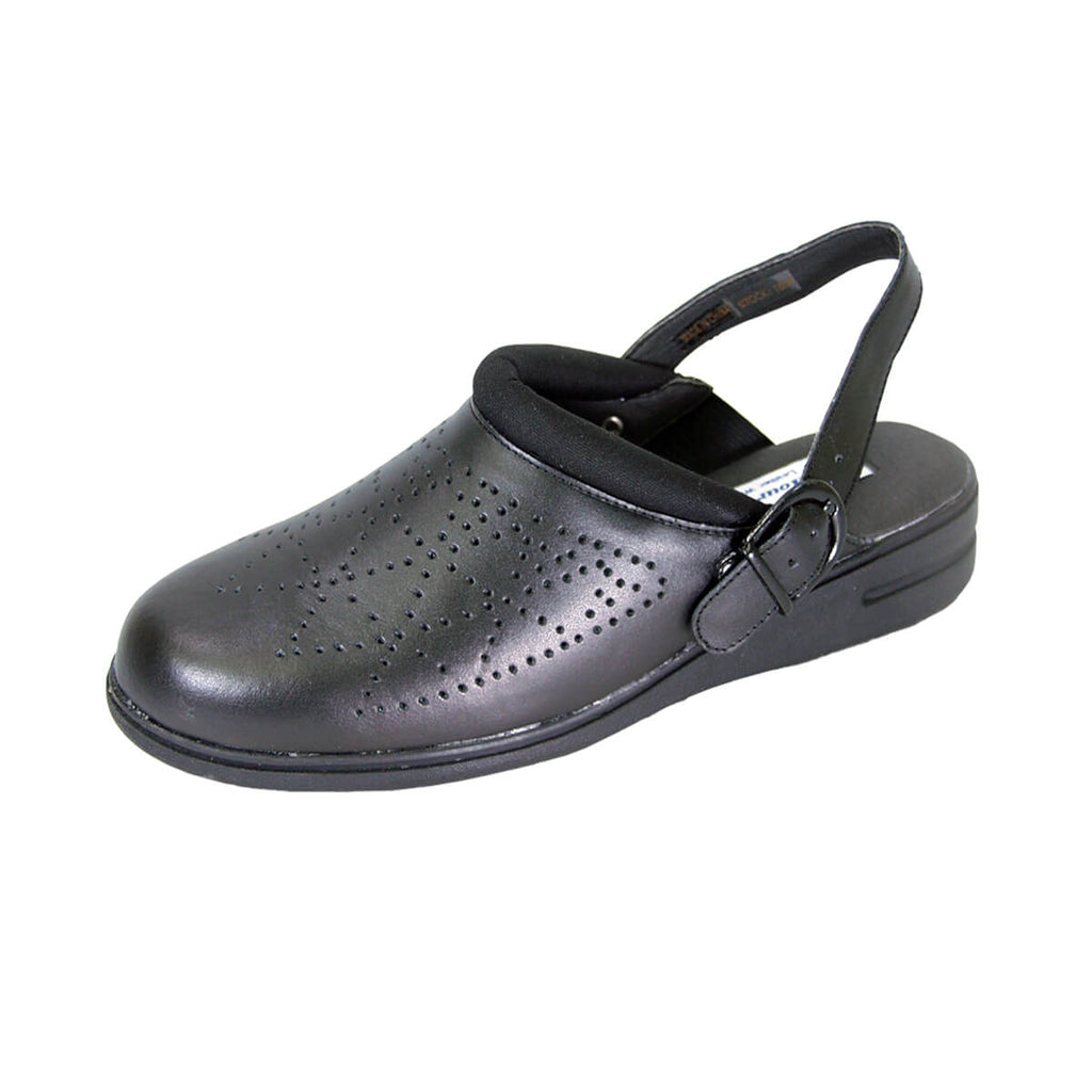 24 HOUR COMFORT Carrie women's extra wide width clog is amazingly comfortable and stylish for this season. This ladies 1.5" low-heel slingback clog features a leather upper along with a cushioned insole to keep your feet comfortable all day long. Its outsole is made of durable and lightweight rubber material for maximum surface grip.