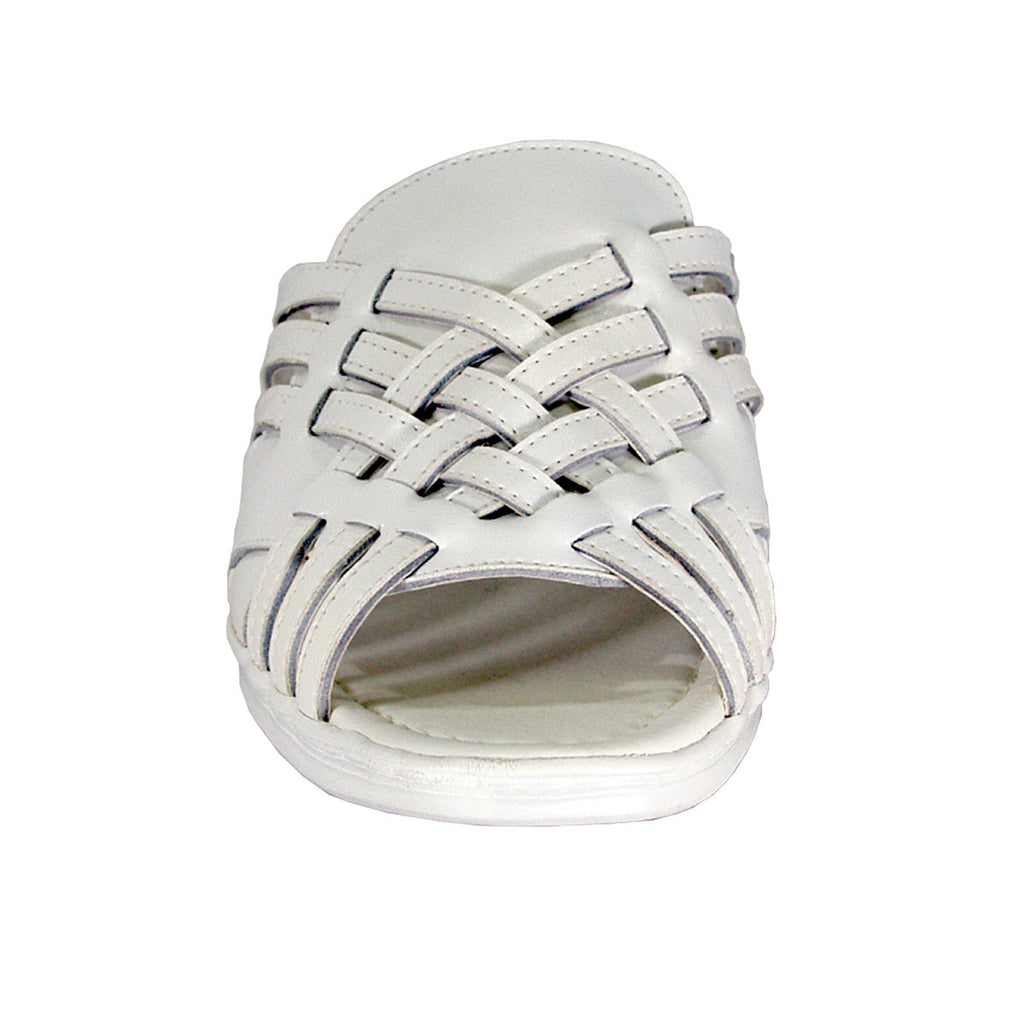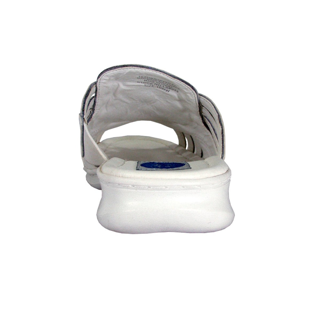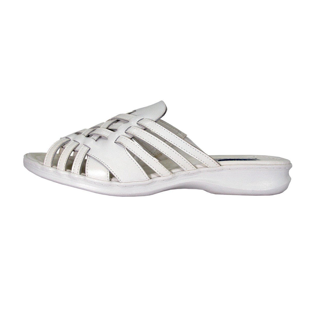 24 HOUR COMFORT Dena women's extra wide width casual leather slides. This ladies' 0.5" low heel sandal features a leather upper along with an outsole made of durable, lightweight rubber materials for maximum surface grip. The woven instep of these slide sandals makes them the perfect way to show off your contemporary sense of style.