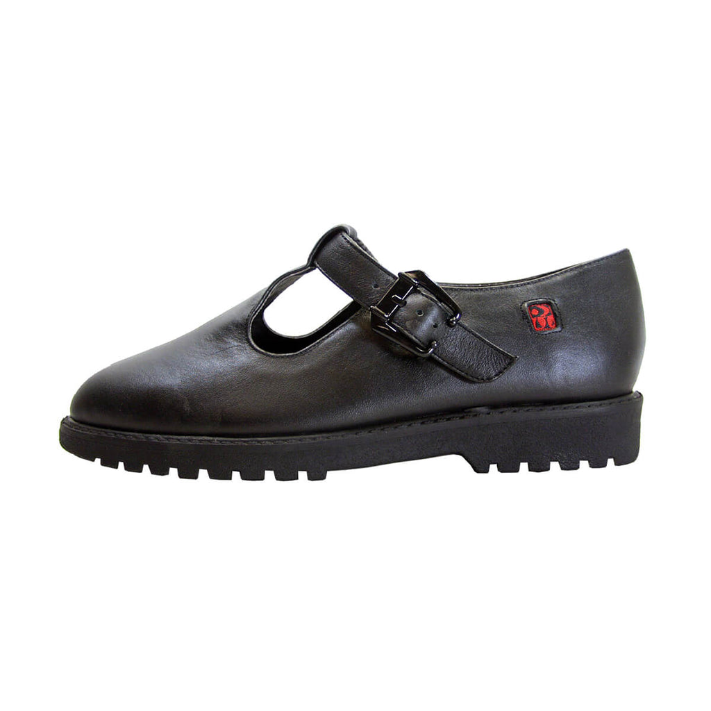 24 HOUR COMFORT Lela women's wide width T-strap design shoes. These loafers feature a round toe, strap with adjustable buckle, and 1" low heel. The outsole is made of rubber materials providing maximum traction, and the leather upper enhances breathability that doesn’t bother your feet throughout a continuous working day.