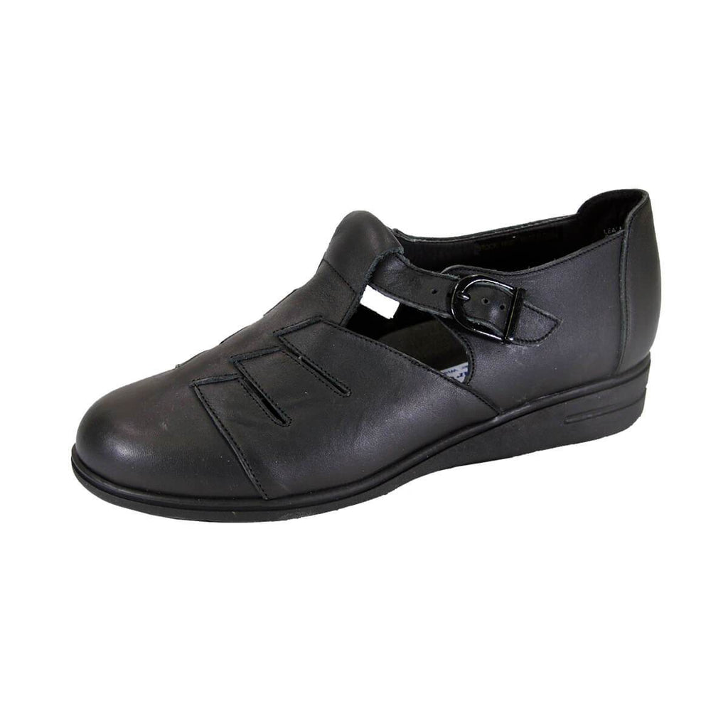 24 HOUR COMFORT Mara women's wide width t-strap closure shoes. This ladies shoe has a rubber sole that provides maximum traction, and a leather-designed upper to enhance breathability which doesn't bother your feet throughout a continuous working day. Its outsole is made of durable and lightweight rubber material to keep you comfortable and going all day long.