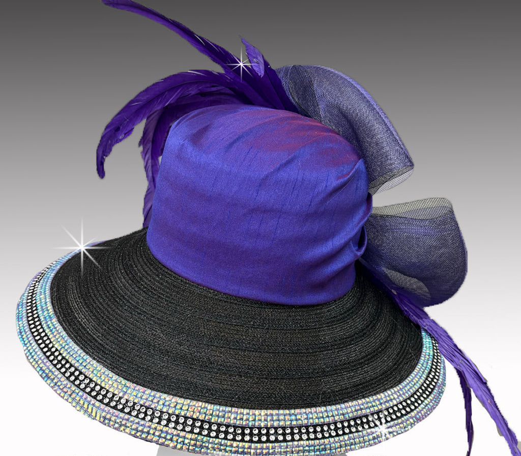 Women Church Hat 3385 Black Purple