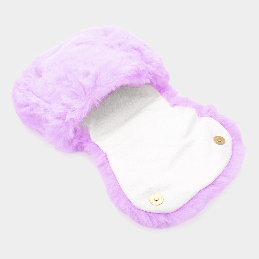 This sophisticated faux fur tote and crossbody bag in rich purple combines style with versatility. Measuring 9" x 8", it features a comfortable 3" top handle and a detachable 23.5" strap for multiple carrying options. The bag closes securely with a magnetic snap, offering easy access while maintaining your belongings safely on hand. Although it doesn’t have an inside pocket, its compact design is perfect for carrying daily essentials with expert flair.